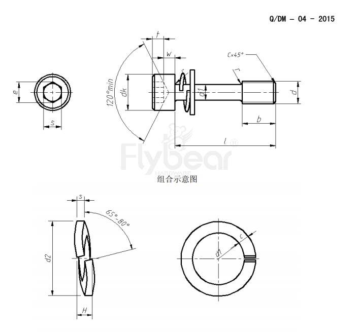 304不锈钢A2-70内六角不脱出带平弹垫组合螺钉Q/DM-04